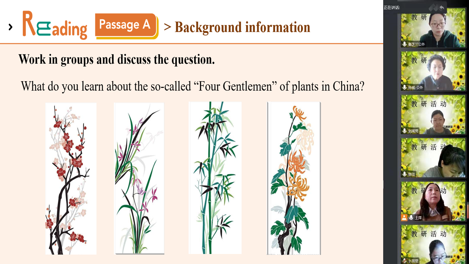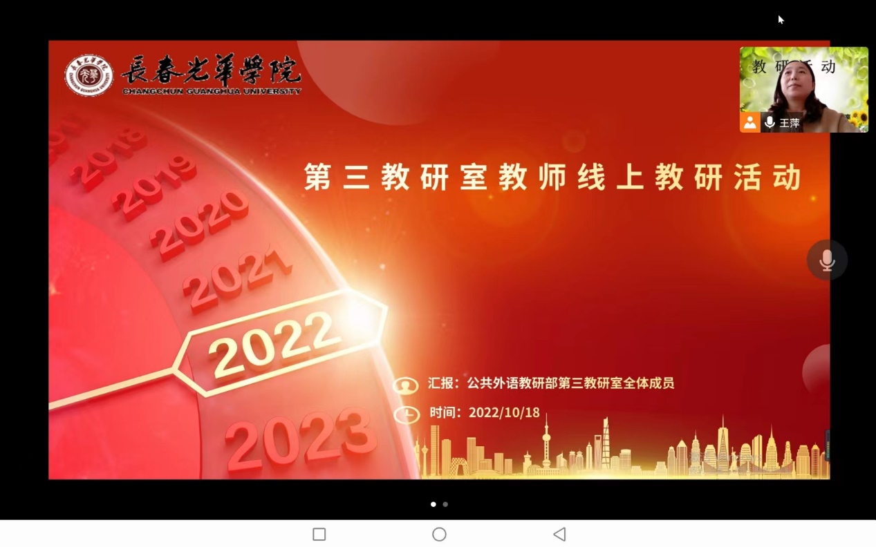 为实现资源共享,提高教师的教研水平和备课效率。2022年10月18日,公共外语教研部第三教研室于下午13:00,通过腾讯会议,进行线上集体备课。以教材Unit 3 Cultural traditions in China,为主题展开。