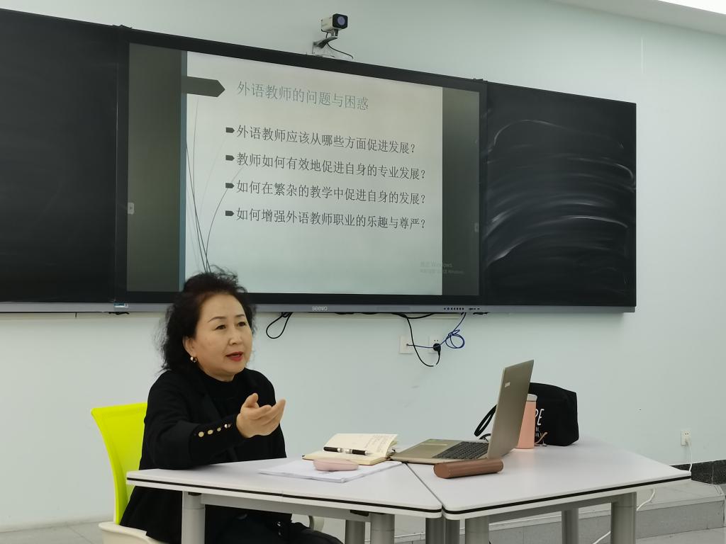 2023年11月21日下午13:30,吉林省优秀教师、原吉林省大学外语教学研究会理事孙威教授于一教221智慧教室进行了题为《外语教师专业发展的途径》的学术报告。科研处薛乔蔚老师及公共外语教研部全体教师参加了此次报告。
