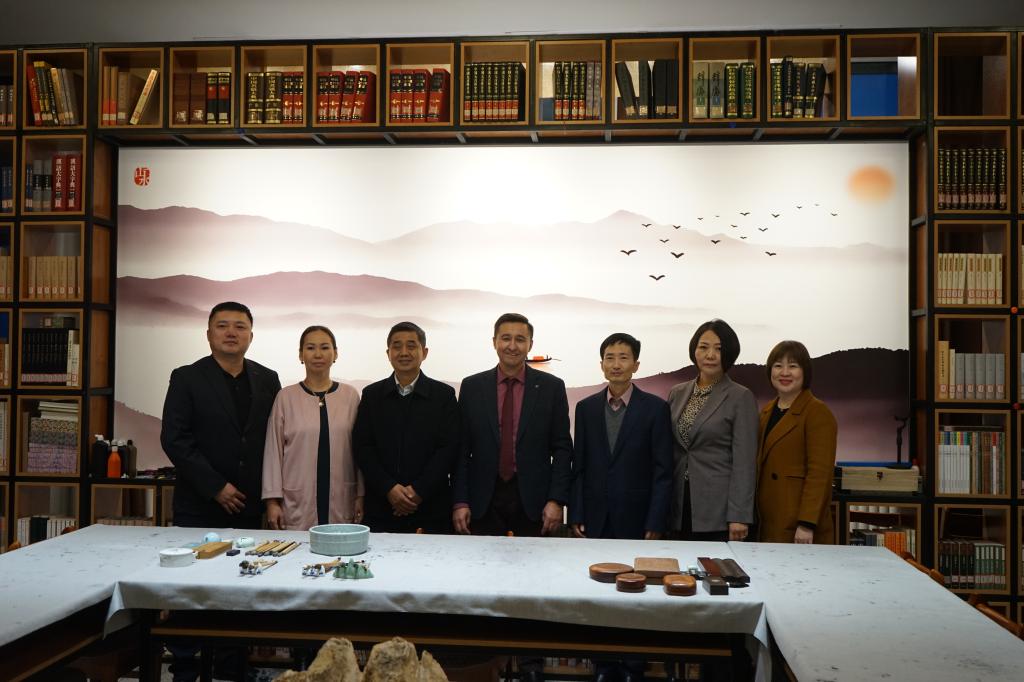 2023年10月,俄罗斯东西伯利亚国立工艺与管理大学董事长一行在图书馆鉴郎轩合影